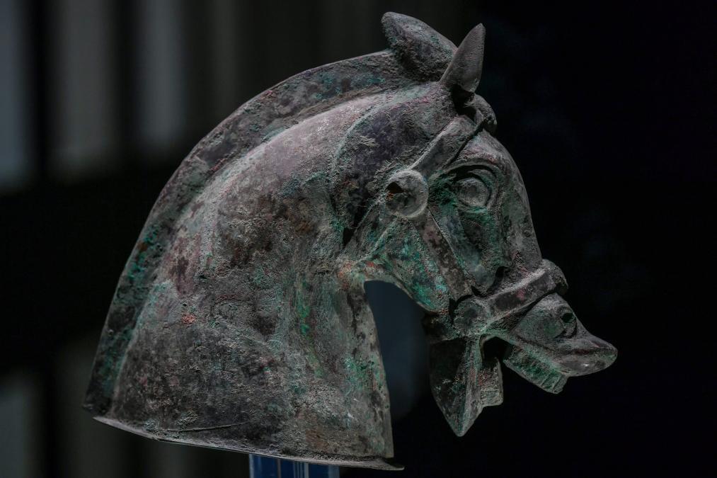 这是在山西省临汾市博物馆拍摄的战国时期的铜马首。