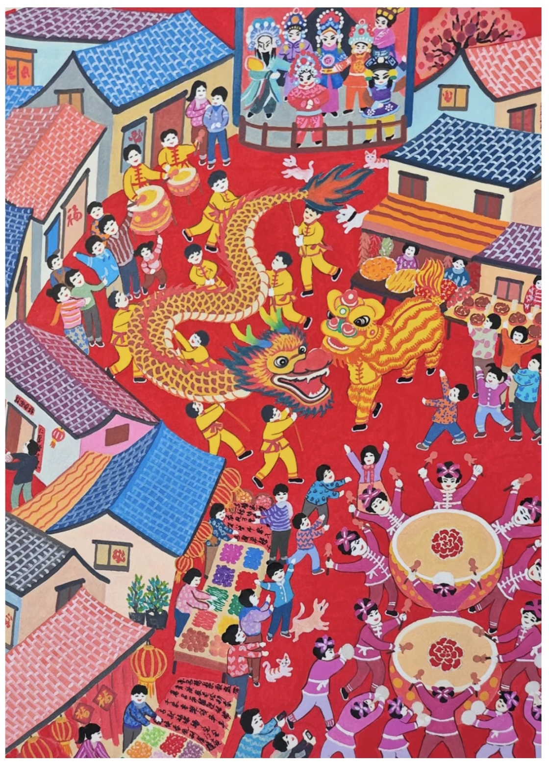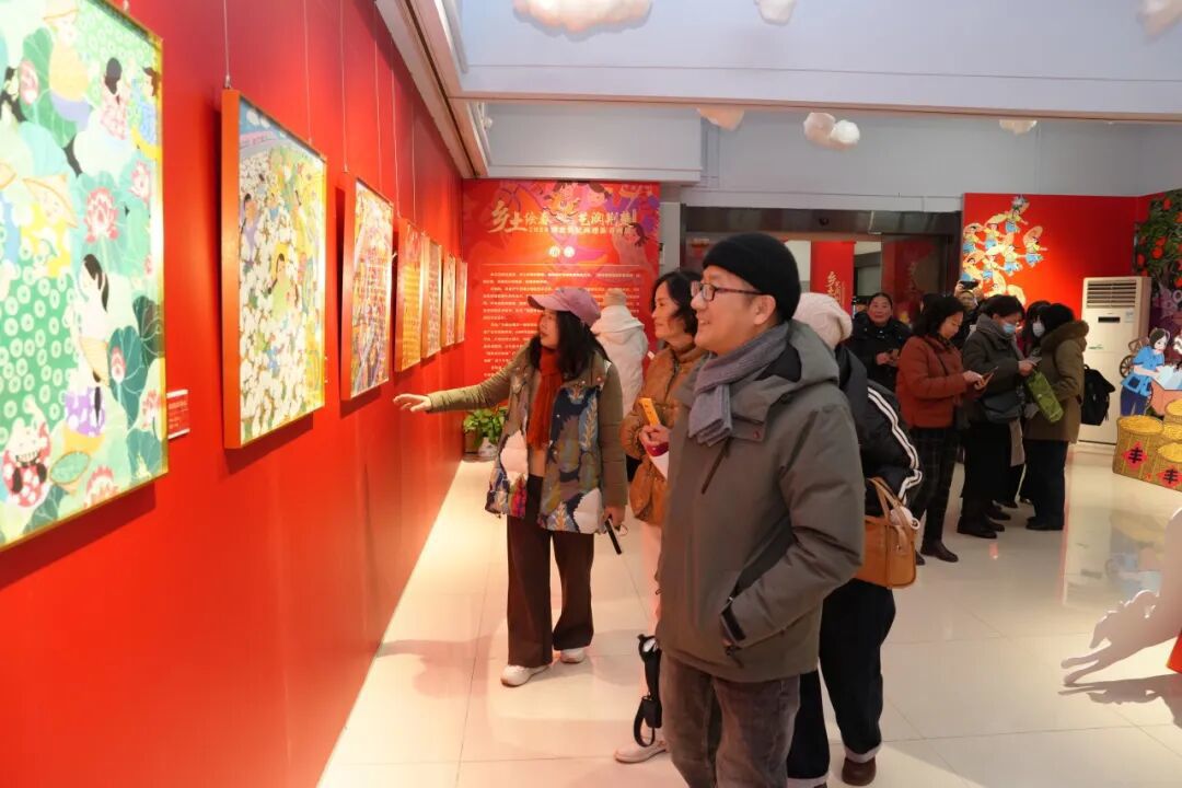 湖北省群众艺术馆展览策划团队介绍,在湖北省文化和旅游厅的指导下,该馆从2021年起,已经连续6年举办农民画和新年画的迎新春展览。今年更是从全省各地遴选40件优秀农民画作品集中展现,用“沉浸式”展览模式,融入传承人现场演示、集赞兑换礼品等环节,打造可赏、可玩、可打卡、可互动的迎新春文化活动。