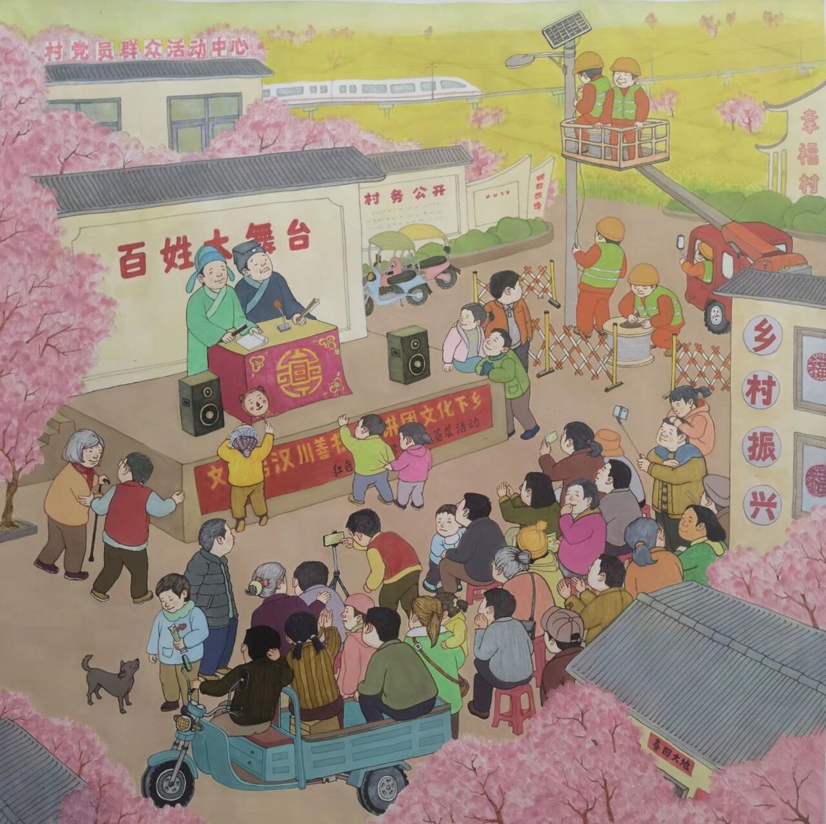 “每幅作品都色彩鲜活、充满生活气息,饱含我们对家乡的热爱和对新春的美好期盼,深藏着我们对家乡泥土的深情眷恋,对乡村振兴的由衷赞美。”他说。