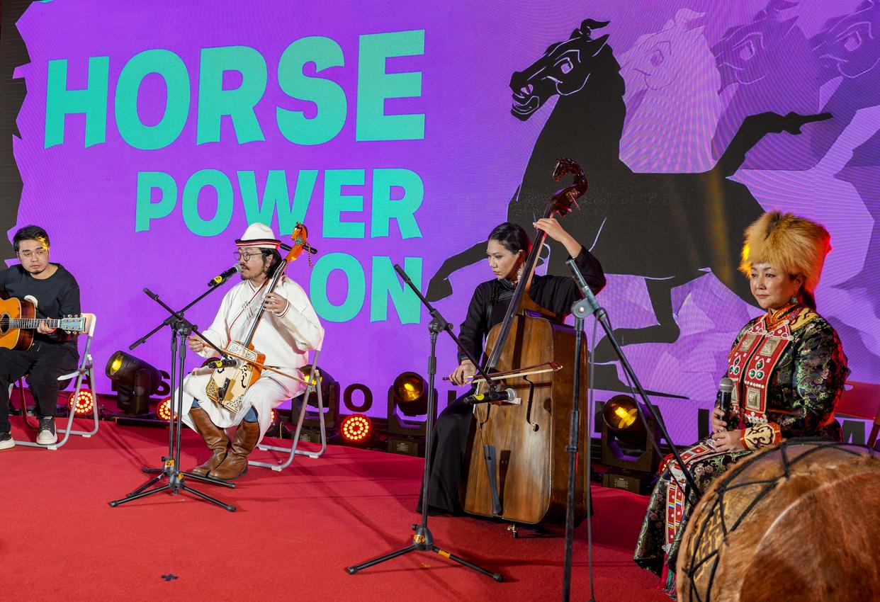 1月26日晚,在甘肃省博物馆一楼大厅,乐队在“马力全开——博物馆启航夜”活动现场演奏《万马奔腾》。新华社记者 郎兵兵 摄