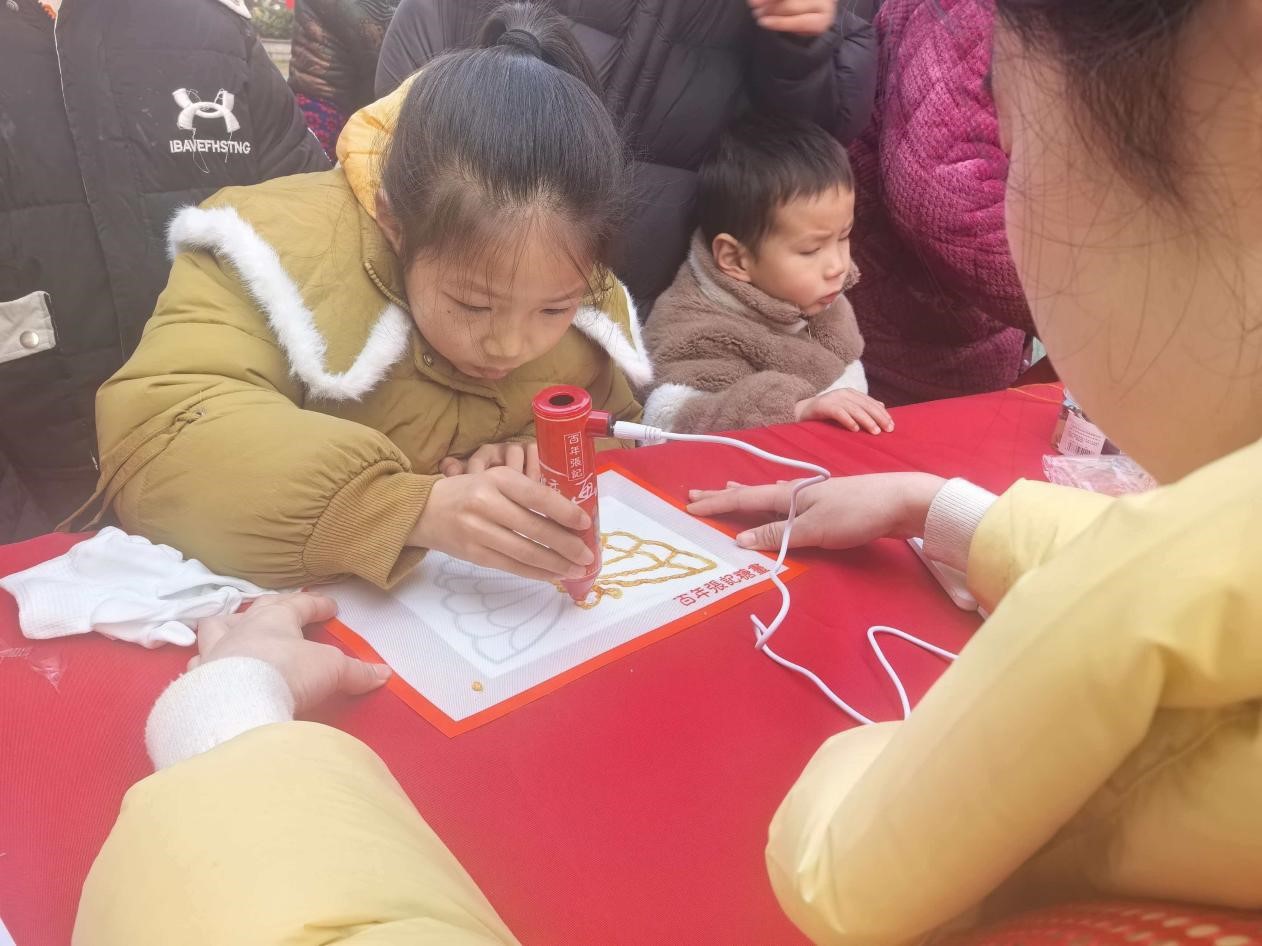 非遗美食区无疑是孩子们最留恋的“甜蜜角落”。棉花糖机旁围满了笑脸,缕缕糖丝缠绕成蓬松的云朵,孩子们举在手中、甜在嘴里、乐在心里。在这里,传统技艺成了可看、可玩、可尝的鲜活体验。