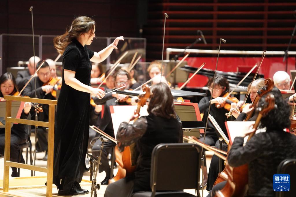 1月28日,在美国费城,指挥家娜奥米·吴执棒2026“欢乐春节”音乐会。新华社记者 张凤国 摄