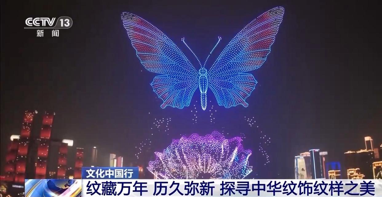 如今,古韵国风成为年轻人眼中的“顶流审美”,越来越多的传统丝绸纹样被快速提取,经过再设计装点在配饰上成为“国潮萌宠”;“蝶恋花”“云纹宝葫芦”等纹样在无人机灯光秀上与赛博光影碰撞交融……这些镌刻着民族审美与文化基因的纹饰纹样正走出古籍与文物,融入文创设计、日常消费、城市景观、非遗传承等多元现代场景,成为彰显文化自信、传承中华美学的生动表达。