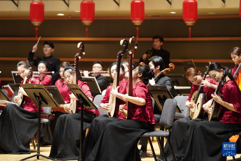 中央音乐学院民族管弦乐团29日在美国费城金梅尔表演艺术中心奏响中国新春乐章。对许多当地听众来说,这是他们首次现场聆听琵琶、二胡等中国传统乐器的音色与韵味,进而感受到一个此前只存在于想象中的中国。