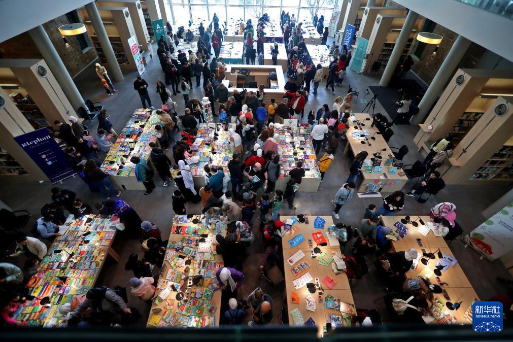这是1月31日在黎巴嫩贝鲁特国家图书馆拍摄的儿童书展现场。