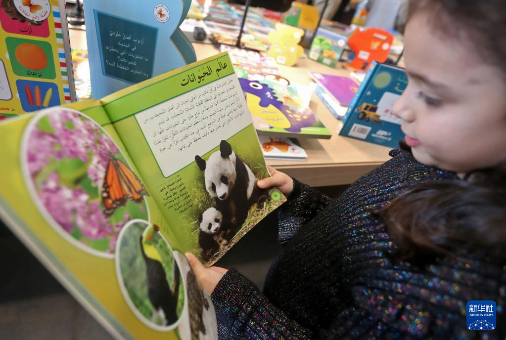 1月31日,一名女孩在黎巴嫩贝鲁特国家图书馆举办的儿童书展上阅读。