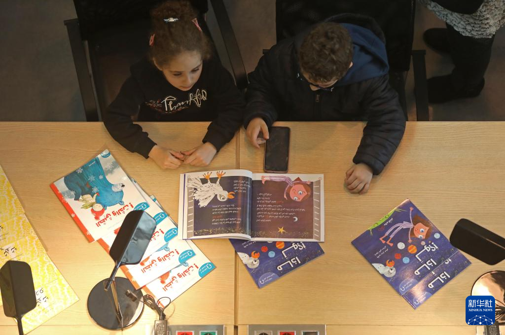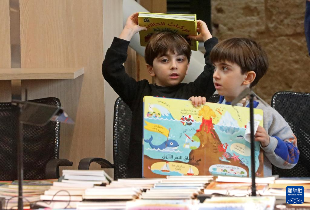 1月31日,孩子们在黎巴嫩贝鲁特国家图书馆举办的儿童书展上阅读。