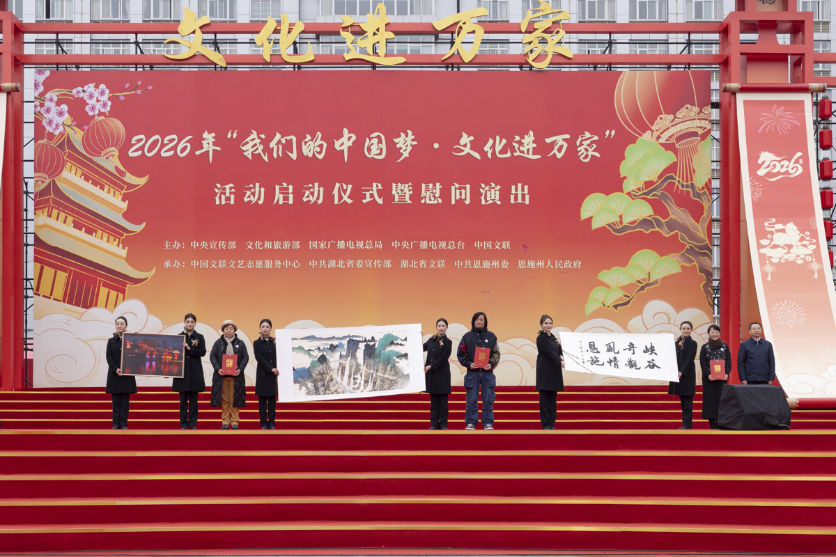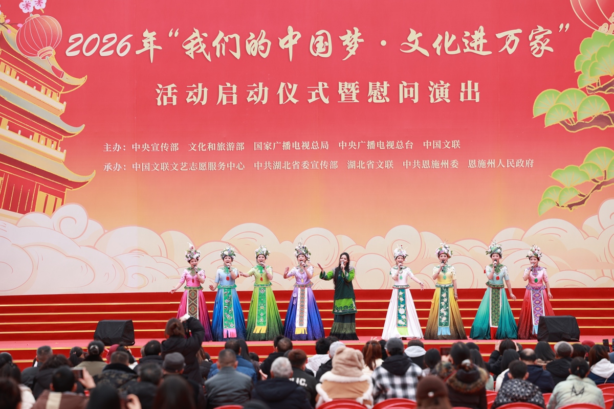 2026年2月1日,2026年“我们的中国梦 —— 文化进万家”活动启动仪式暨慰问演出在湖北省恩施土家族苗族自治州宣恩县拉开帷幕。活动现场,群星荟萃、氛围热烈,为群众送上了一场浸润民族风情、饱含时代温度的文化盛宴。