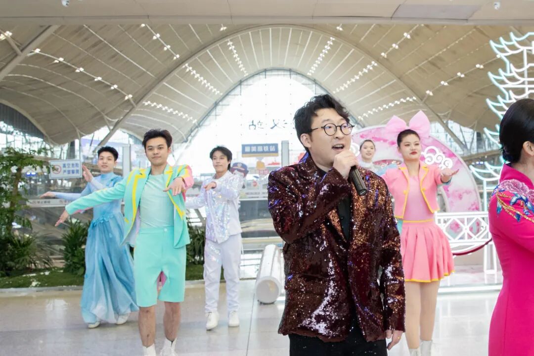 与此同时,多个检票口区域化身为流动的文艺舞台。活动在B1检票口区域以青春洋溢的互动歌曲串烧《燃动青春》拉开帷幕。女主持人方琴以“践行初心永不忘,人民铁路为人民”的亲切问候欢迎旅客,并开启了首轮有奖问答互动,内容涉及文明出行、乘车安全须知等,旅客们踊跃参与,气氛热烈。