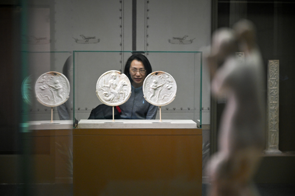这是展出的圆形浮雕挂饰(2月3日摄)。 新华社记者 金良快 摄