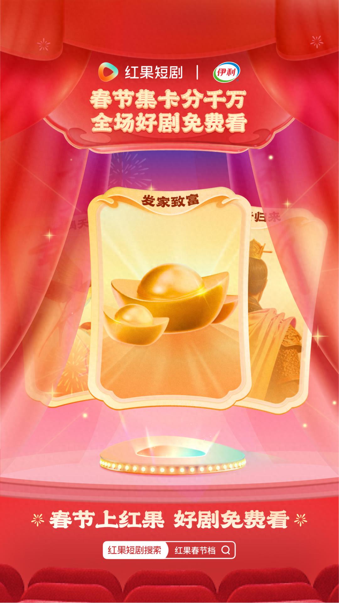 马年春节将至,短剧赛道新春氛围拉满。2026 年 2 月 9 日 10 点至 3 月 3 日 24 点,红果短剧春节档正式启幕,活动期间打开红果短剧 APP,即可免费观看超千部短剧、漫剧新作,更有集卡赢现金红包、明星直播互动、有奖征文、神评论大赛等多元活动上线,以丰富的视听内容与趣味玩法,陪伴观众欢度马年新春。