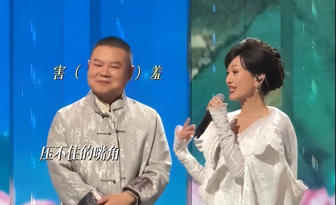 视频中,赵雅芝站在舞台上唱着歌,牵起一旁岳云鹏的手。
