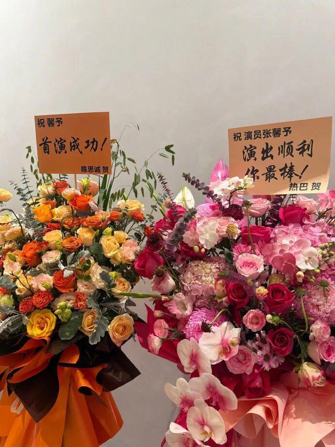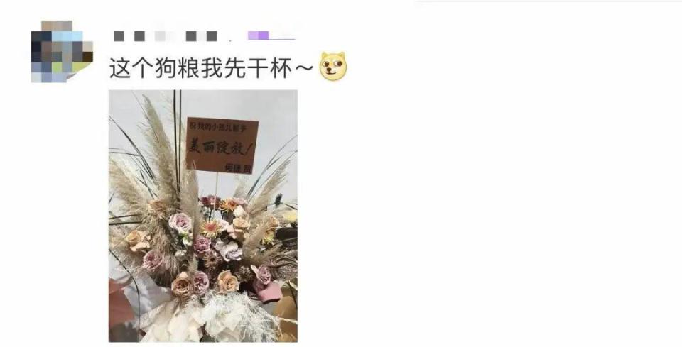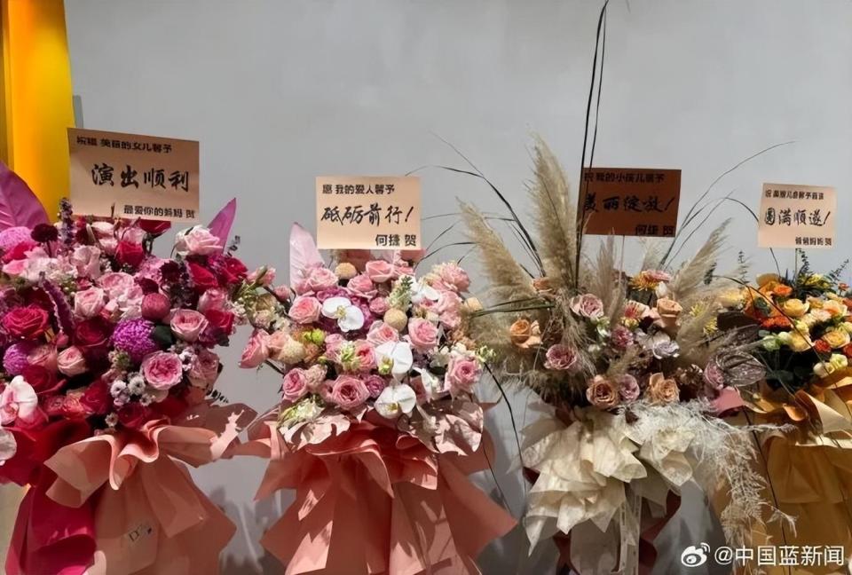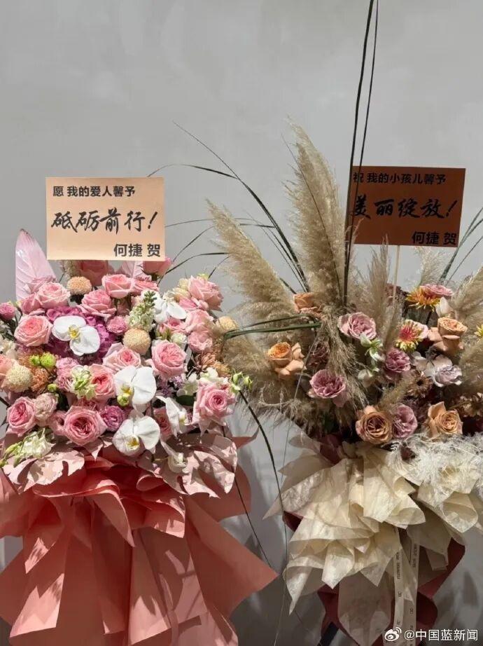 丈夫何捷送花篮,并称呼张馨予为“我的小孩儿”。