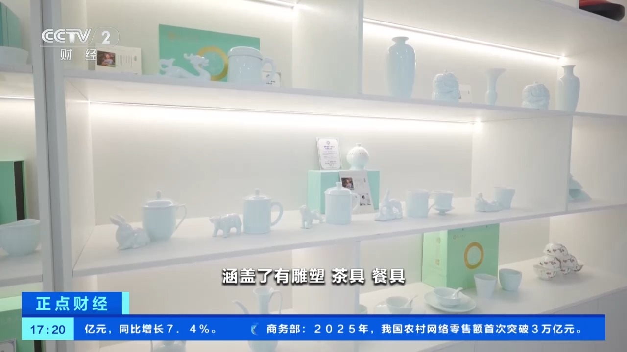 江西陶瓷工艺美院陶瓷产业发展中心主任 魏杰:今年研发了51款,涵盖雕塑、茶具、餐具。目前大众产品的消费定价在60元到150元之间,市场反馈最好的几款,销售额有一亿多元。