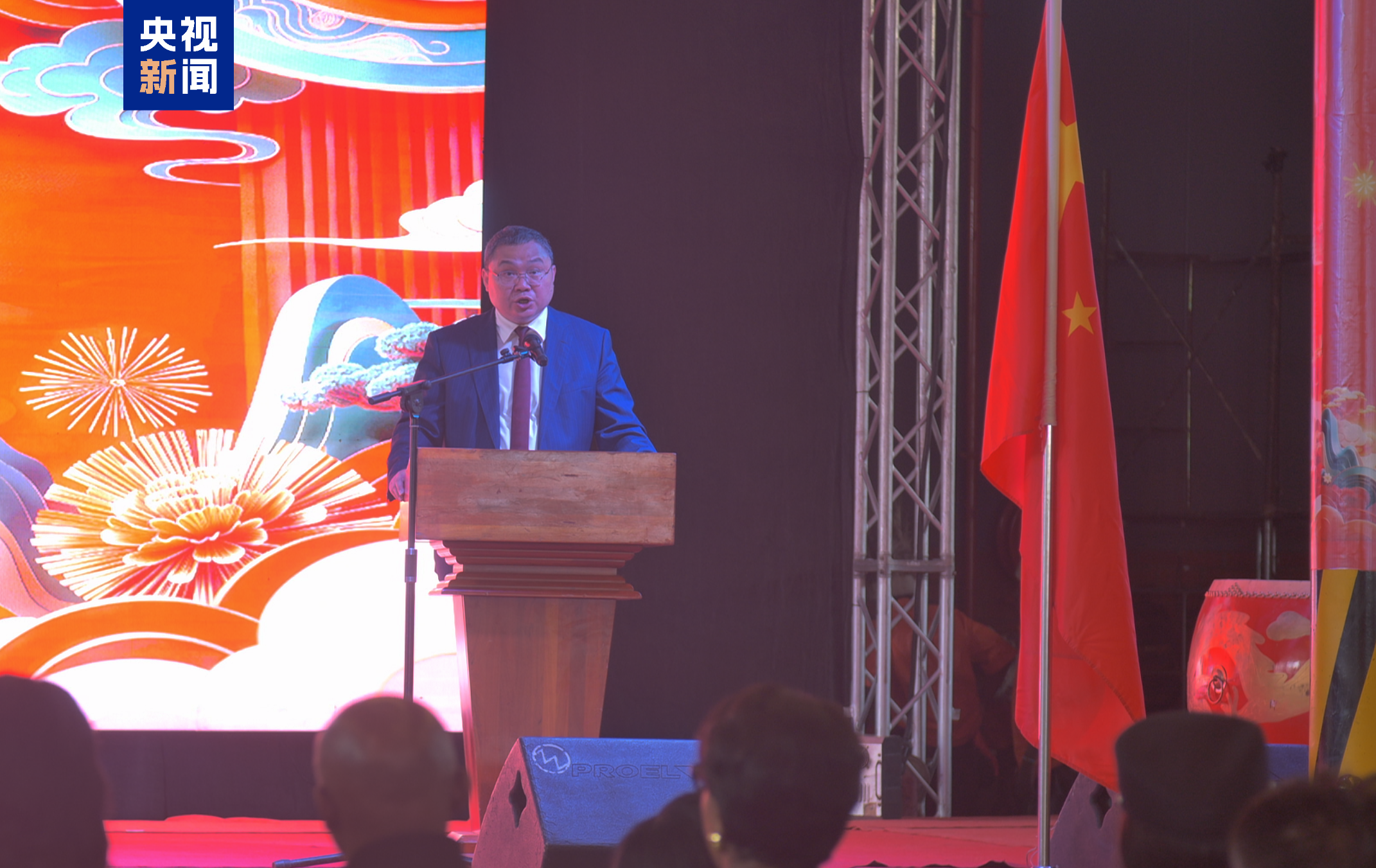 △赞比亚中国春节庙会户外大屏播放总台2026年春晚宣传片