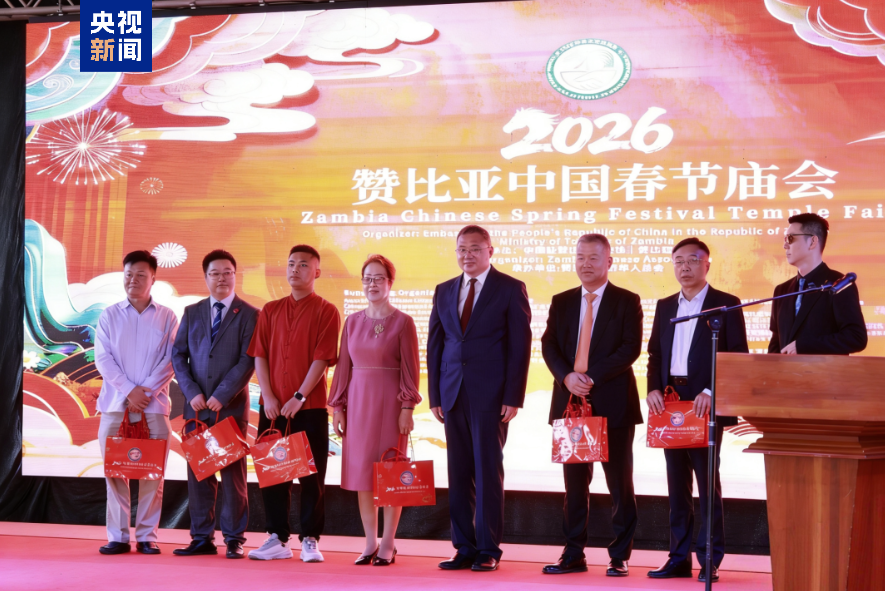 当地时间2月8日,由中国驻赞比亚使馆和赞比亚旅游部共同主办,赞比亚华侨华人总会承办的赞比亚中国春节庙会在赞比亚首都卢萨卡隆重举行。赞比亚副总统纳卢曼戈、旅游部部长西孔巴等赞方政府高级官员,中国驻赞比亚使馆临时代办王晟出席活动,在赞中资机构、侨社、商会和企业代表、华侨华人及赞比亚当地民众近千人欢聚一堂,共同迎接马年新春。中央广播电视总台2026年春晚宣传片也在庙会的户外大屏惊艳亮相,为现场来宾带去了中国马年春节浓浓的年味。