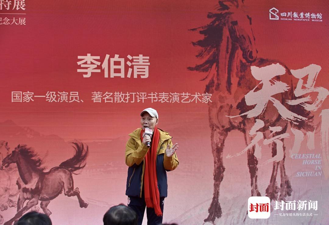李伯清更即兴演绎了一段“散打”评书。他风趣地表示,自己是“正儿八经”的徐悲鸿徒孙,“可能是我散打名气太大了,大家都忘了我会画画。”他以幽默的方式分享了观看徐悲鸿马作的两种感悟:一马当先的闯劲与老马识途的智慧。他寄语观众,在困难时应具备骏马一往无前的勇气,在顺遂时也需要保持老马识途的清醒,不忘来路。