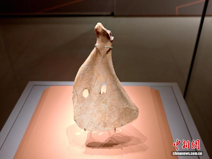 2月10日,“寻找‘最初的中国’——秦晋豫‘十四五’期间中华文明探源考古成果展”开启预展。图为展出的卜骨。 中新社记者阿琳娜摄