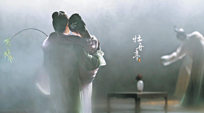 剧中的花神由演员李倩饰演,她既是杜柳爱情跨越时空的见证者,又是与杜丽娘有灵魂共鸣的女性知己。李倩说,这个角色“既有神性的超脱,又有人性的温情,还有属于自然的本真”。她与杜丽娘之间没有传统的双人舞,依靠的是眼神、呼吸与肢体的微妙呼应。在“写真”的共舞中,两人动作呼吸完全同步,达到了至高的融合。