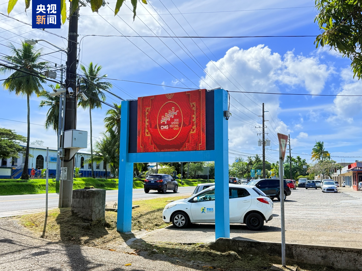 △总台春晚海报在帕劳最大城市科罗尔市中心户外大屏展示