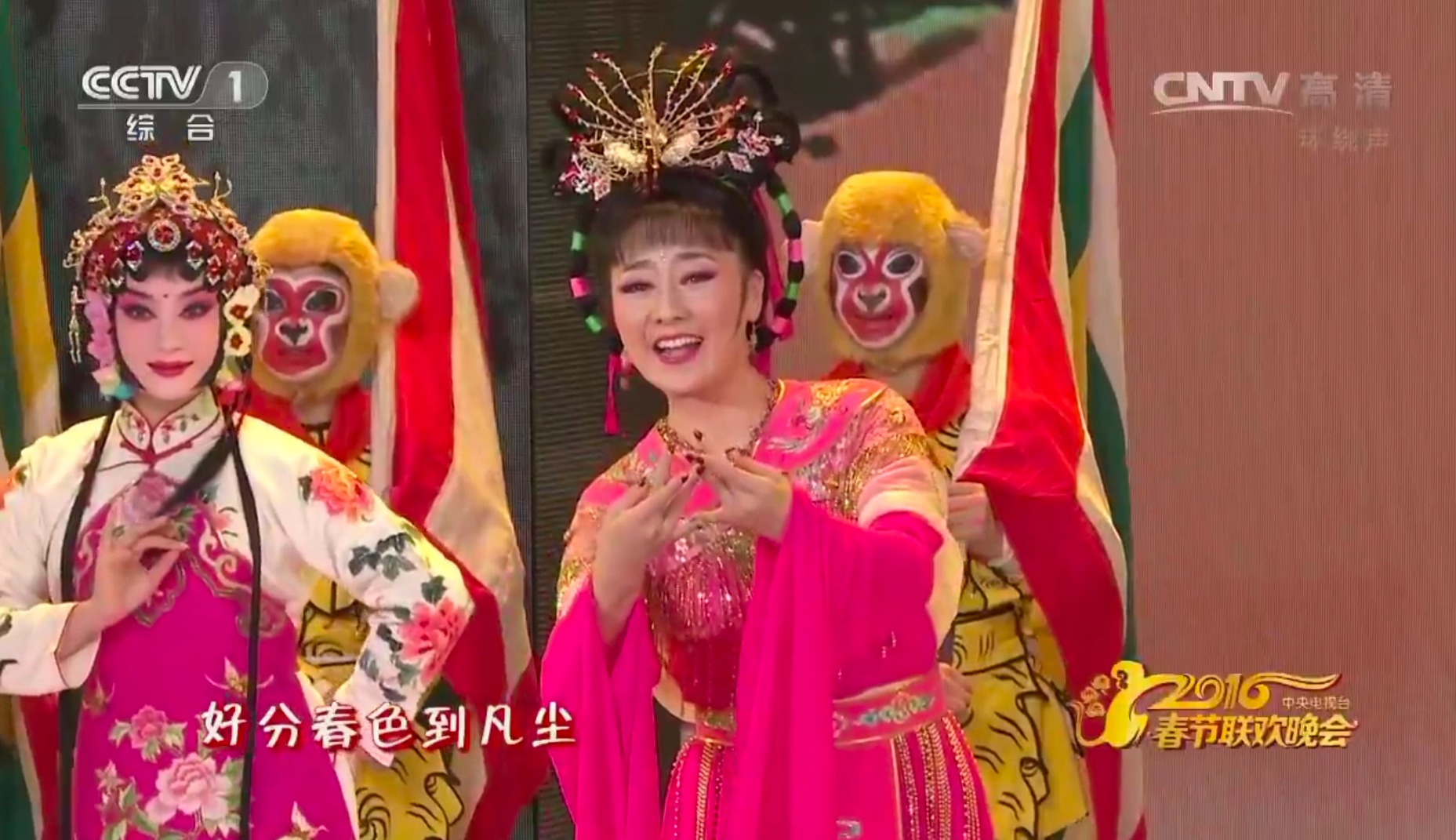 2016年,何云在央视春晚上表演了黄梅戏经典选段《天女散花》。“鲜花开放满天庭,满天庭,万紫千红别有春。采得鲜花下人世,好分春色到凡尘……”舞台上,何云身着一袭桃粉色长裙,水袖轻扬,步履轻盈,清丽婉转的唱腔配合着慈柔似月的神态,将天女普降祥瑞、泽被人间的仙姿与善意展现得淋漓尽致。