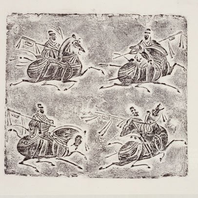 汉代是我国鞍马画的第一个高峰,在画马史上占有极其重要的位置。这一时期出现了大量以马的形象为题材的壁画、画像砖、画像石以及各种雕塑作品,四川画像砖《四骑吏綮戟图》便是其中的代表作。