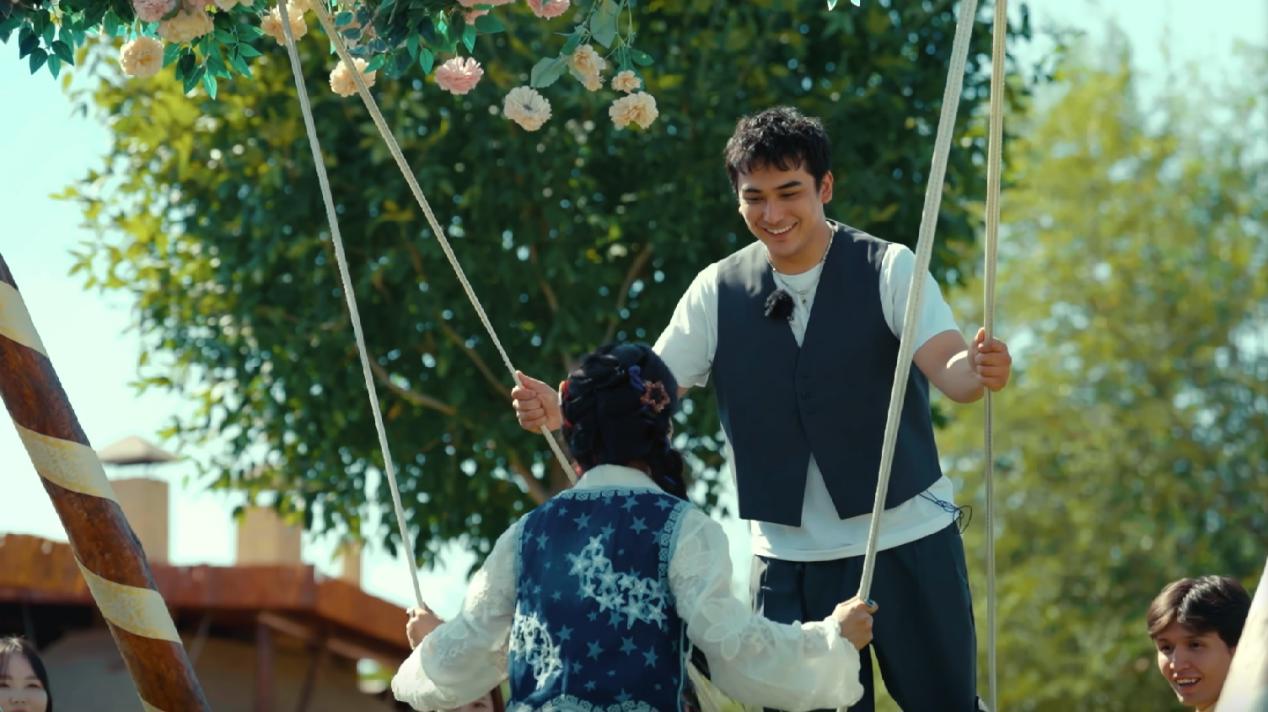 在这里,美食与欢歌交响成快乐的协奏曲。歌手努尔乔尔蓬、拉丹珠、努尔扎斯选择古城充满哈萨克族风情的民俗村,浓烈的马奶酒、气势豪迈的摔跤竞技、青年男女用以传情的秋千、冬不拉琴弦上即兴流淌的阿肯弹唱……都令人印象深刻。