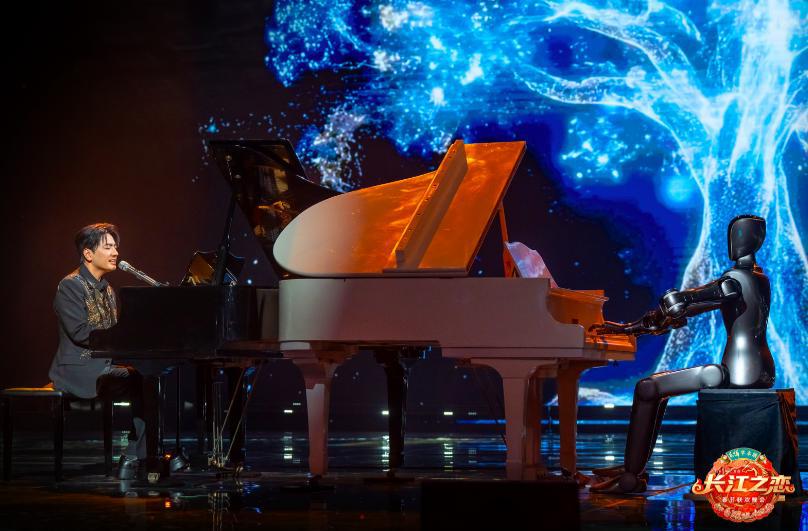 随着湖北AI智能机器人产业的快速发展,“光谷造”的身影也走进了本次湖北春晚。湖北光谷东智机器人和机器马更是多次亮相。开场节目中,机器马身着华服与成熟舞者同台热舞,憨态可掬;2025年的大热神曲《大展宏图》再度升级,多台机器人登台起舞,为热闹的舞台平添科幻感;海来阿木深情演唱《不如见一面》时,机器人坐在钢琴前与其完成对弹,仿生蝴蝶环绕飞舞,为舞台同时注入未来感与梦幻气息。科技元素并没有喧宾夺主,而是恰到好处融入歌舞戏曲,成为烘托年味的时代亮色。