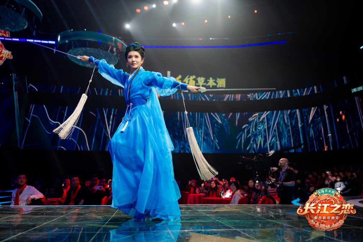录制中,李云霄一袭霁蓝长衫,以越剧身段融入剑舞,挥剑时英姿飒爽,收势时婉转含蓄。她曾因《新龙门客栈》中金镶玉一角广受关注,此番以剑舞诠释江湖意象。