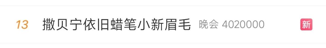 有意思的是,春晚未至,撒贝宁的眉毛又多次上了热搜,在多个采访视频中,不少网友发出疑问弹幕:小撒的眉毛是不是化太浓了?以致于日前,网红博主拉宏桑探访春晚后台时,都忍不住逮着小撒的眉毛不放:“老师,今年你的眉毛又要上热搜。”旁边尼格买提“补刀”:他这叫寿眉,你不要欺负老人家。
