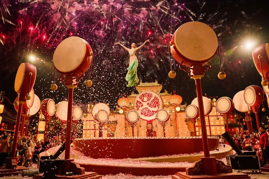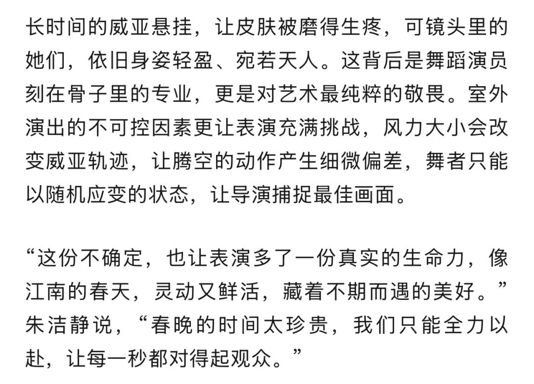 央视春晚义乌分会场的夜,被漫天花瓣与烟火点亮,上海歌舞团的两位舞者朱洁静与周晓辉吊着威亚凌空起舞,如同春神降临,踏鼓迎春。这段表演,让江南的灵动唯美,深深镌刻在亿万观众的新春记忆里。