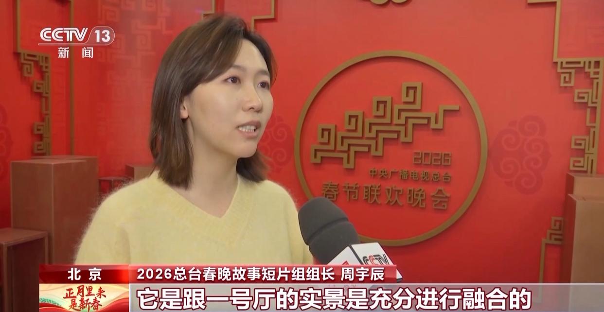 2026总台春晚故事短片组组长 周宇辰:可能看到一号厅开始积雪,在你旁边舞台的小河流就开始流水,它是跟一号厅的实景是充分进行融合的。把整个舞台包括观众席仍然保留,在这个结构基础之上,让大家看到了这些奇妙的景观,像身临其境。