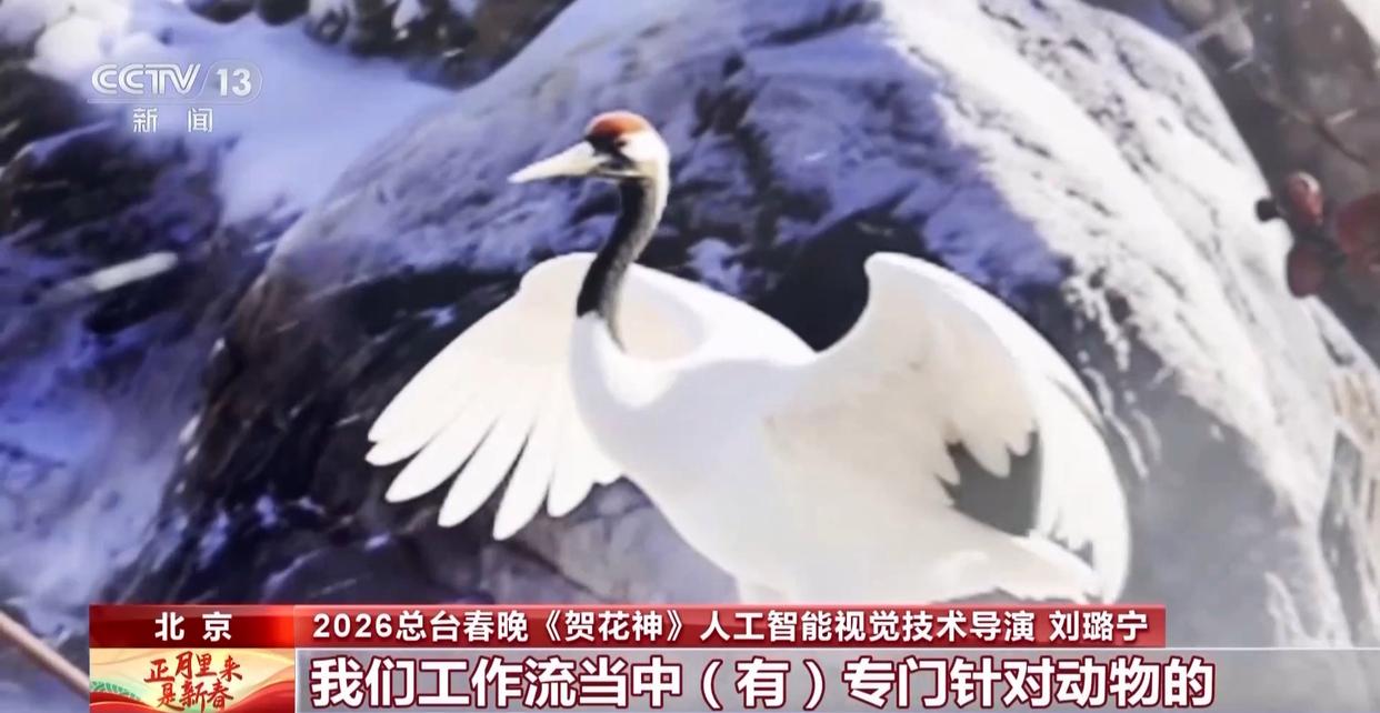 2026总台春晚《贺花神》人工智能视觉技术导演 刘璐宁:节目有很多非常真实的动物,像鹤、飞鸟、小猫、马等,我们工作流当中有专门针对动物的,生成和毛发优化的工具,可能两到三天就生成比较好的效果,这个是现在AI技术的运用,可以相对以往的制作手段来说突破最大的地方。