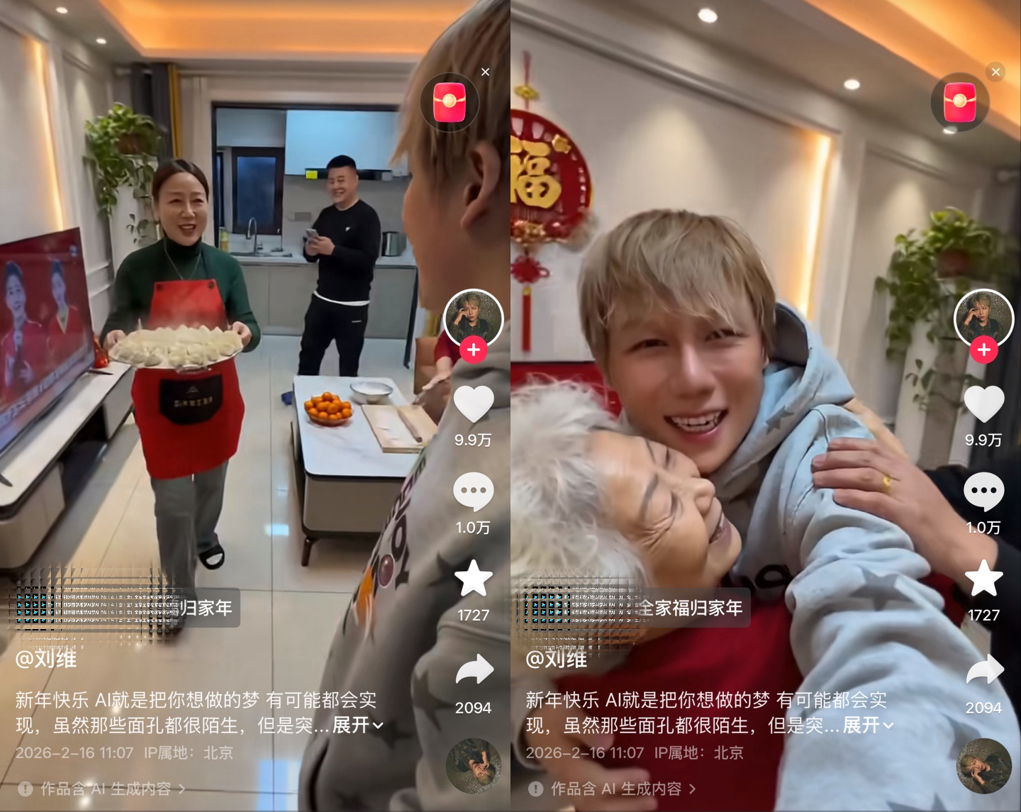 “户口本上就剩自己”的刘维用AI视频迎来了除夕的“团圆”,这一幕让许多网友心酸不已,“眼泪一下就涌出来了,太心疼刘维了!”