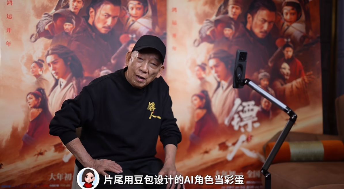 2月19日,《镖人》官方账号与豆包发布共创视频,内容为豆包客串记者“采访”《镖人》导演袁和平。袁导在采访中透露,《镖人》片尾彩蛋就是用豆包制作的。