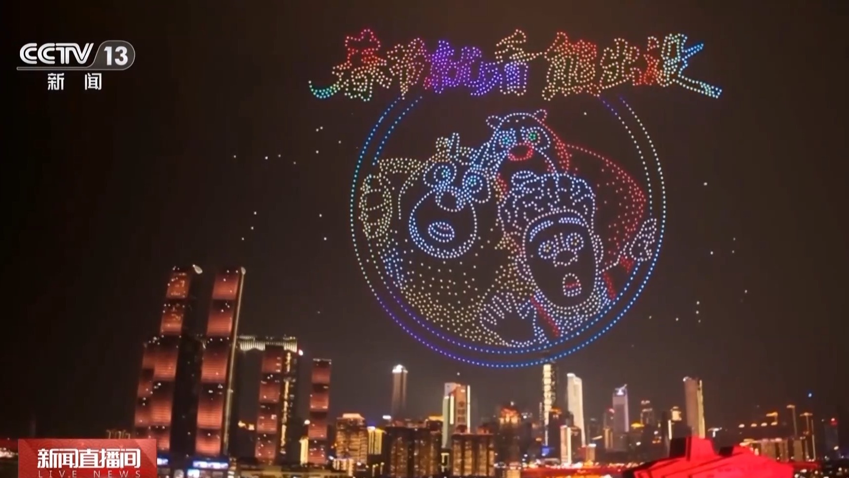 在重庆,“电影+文旅”的融合实践持续落地生根。春节档唯一的动画电影《熊出没·年年有熊》中融入了很多重庆元素,重庆的一家影院推出了各种周边产品和主题活动。在“新韵重庆”无人机灯光秀表演上,“春节就看熊出没”和“全家一起更欢乐”的机组造型出现在夜空上,也为这个春节增添了很多童趣。作为《熊出没》的主要取景地,几天前,在重庆两江四岸的楼宇外墙上,也上演了《熊出没》主题楼宇灯光秀“空中连环画”。