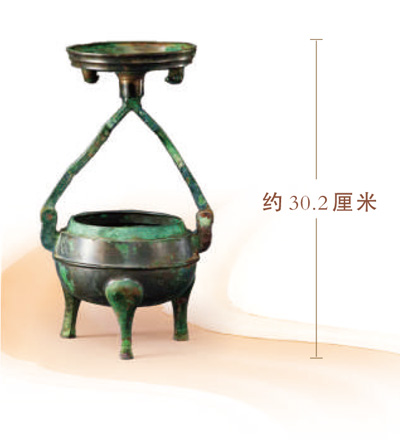 1974年出土于甘肃省平凉市庙庄村战国秦墓的鼎形铜行灯,现藏于甘肃省博物馆。它由盖、键、耳、身4部分组成,支起时高约30.2厘米,收合时仅高约16.7厘米,口径11.3厘米,小巧便携,是战国贵族出行时的重要照明器具。