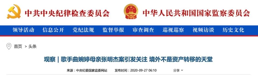曲婉婷近年长期居住于海外,2020年9月她曾在微博发文谈及张明杰的案件,引起网友关注。当时,中纪委网站刊文表示,舆论关注此事,正是因为人们痛恨腐败分子损害国家和人民的利益,攫取大量不义之财,满足亲属子女奢靡生活。现实中一些案例也正是如此,有的甚至是配偶子女移居海外,财产转移到境外,随时准备“跳船”,这样的领导干部与党和人民离心离德,与共产党人的初心使命背道而驰,必须受到党纪国法严惩,为其违纪违法行为付出应有代价。