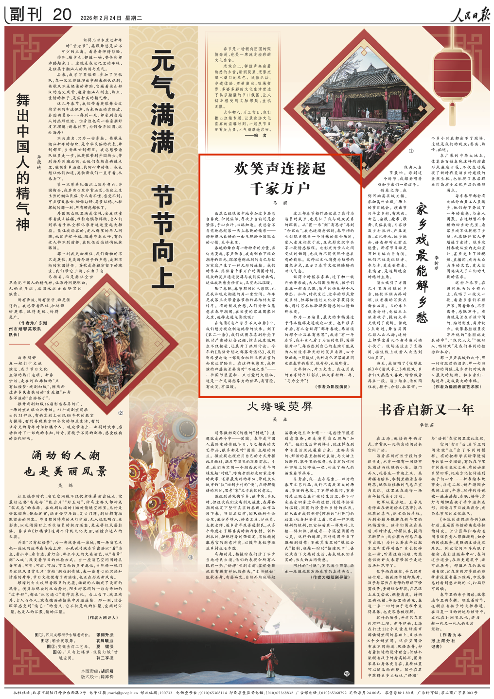 2月24日,《人民日报》副刊版刊登了影视演员马丽的文章《欢笑声连接起千家万户》。
