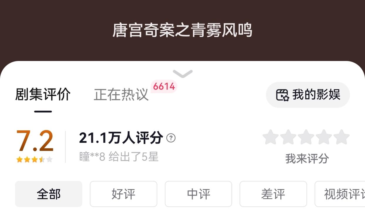 抖音剧集评价显示,该剧已有21.1万人参与评分,目前评分为7.2分,现已看不到官方打出的一星差评。