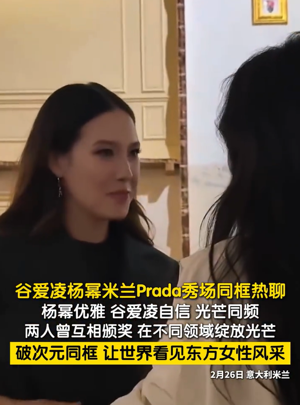 2026年2月26日,在米兰普拉达基金会的Prada秀场,杨幂与谷爱凌惊喜同框,亲密热聊。二人同框画面瞬间引爆关注。
