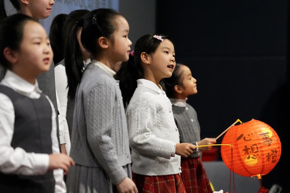 3月1日,小朋友在电影《团圆令》的观影活动上演唱主题曲。新华社记者 邢广利 摄