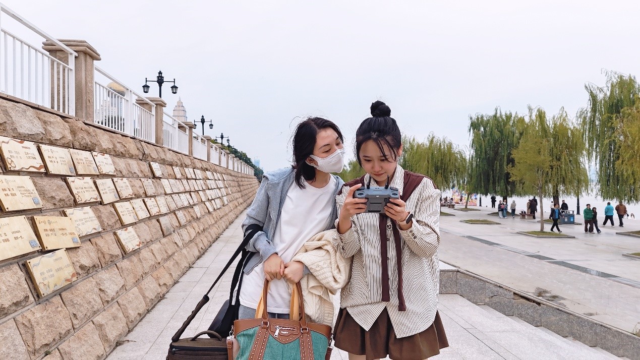 这份荣誉的背后,是一支年轻团队的全力以赴与精心打磨。在创作团队中,有刚入学的研究生一年级新生,他们入校伊始便在共同兴趣的指引和老师们的指导下,快速组建起这支充满活力与创造力的创作团队。由于团队成员在拍摄、剪辑等专业技能方面均非科班出身,没有丰富的创作经验,他们便以勤补拙,投入十二分的时间与精力打磨作品。在共同头脑风暴出拍摄主题后,团队快速明确分工,从编写脚本、文案到化妆造型、演员出镜和现场拍摄,到配音录制、后期剪辑,每个人各司其职。每天晚上课程结束后,安静的教室总会出现他们忙碌的身影,讨论创意、文案、调整镜头、优化剪辑……