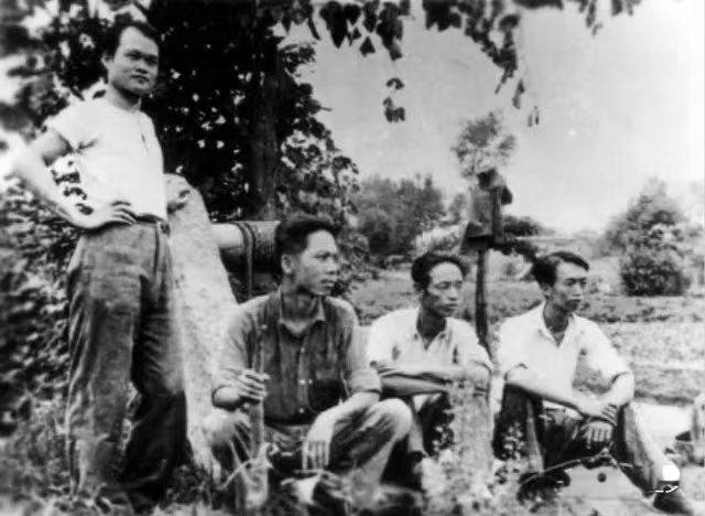 碧野(左一)早年在乡下采风(资料图片)