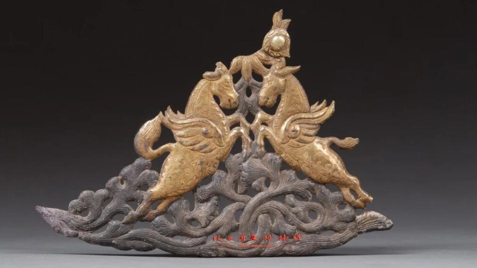 唐翼马纹鎏金银饰片