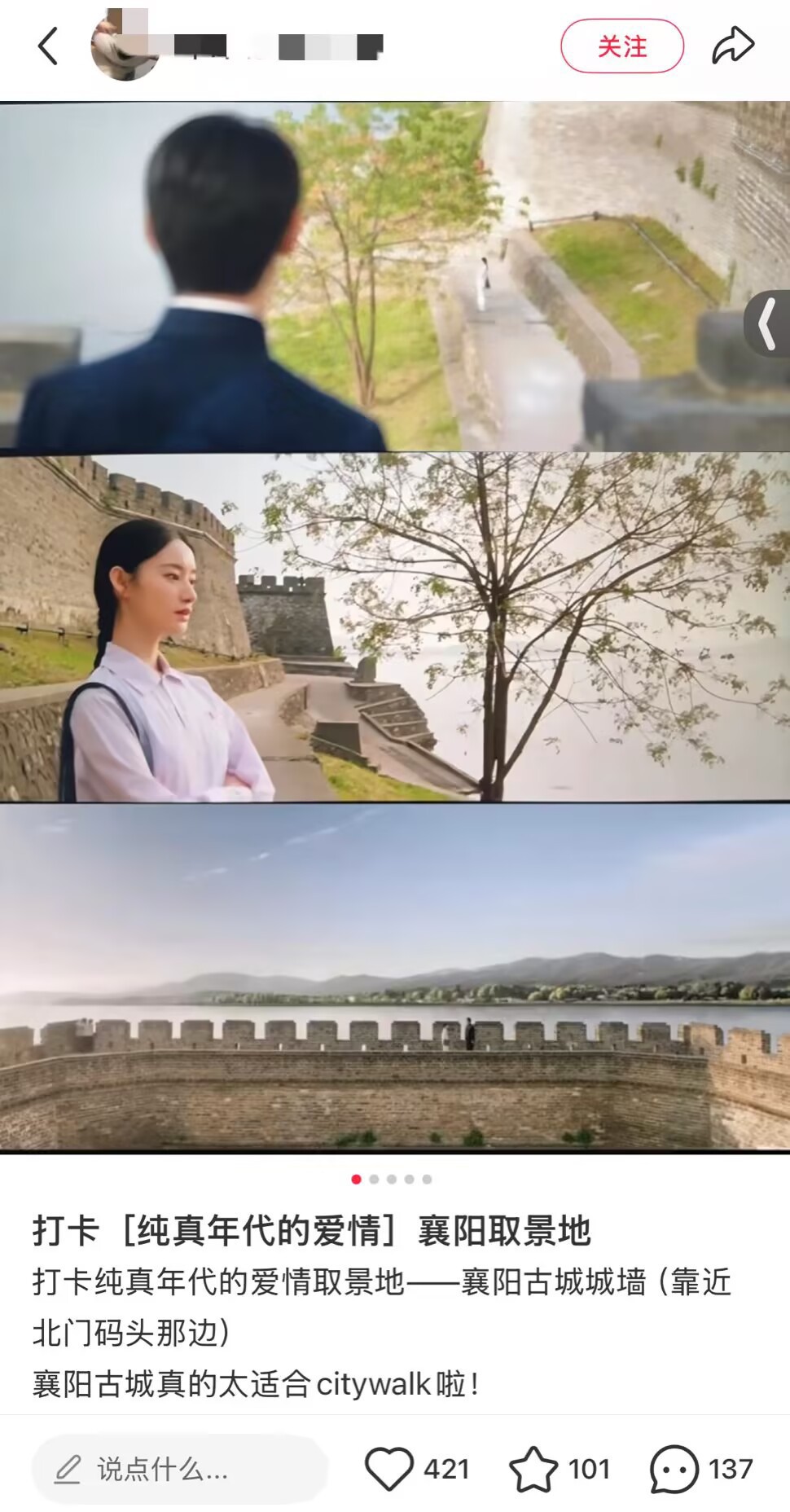 在社交平台,有襄阳网友因为《纯真年代的爱情》的热播而惊喜,”谁懂追剧时发现剧里的场景就在自己家附近?惊喜又熟悉的感觉!”