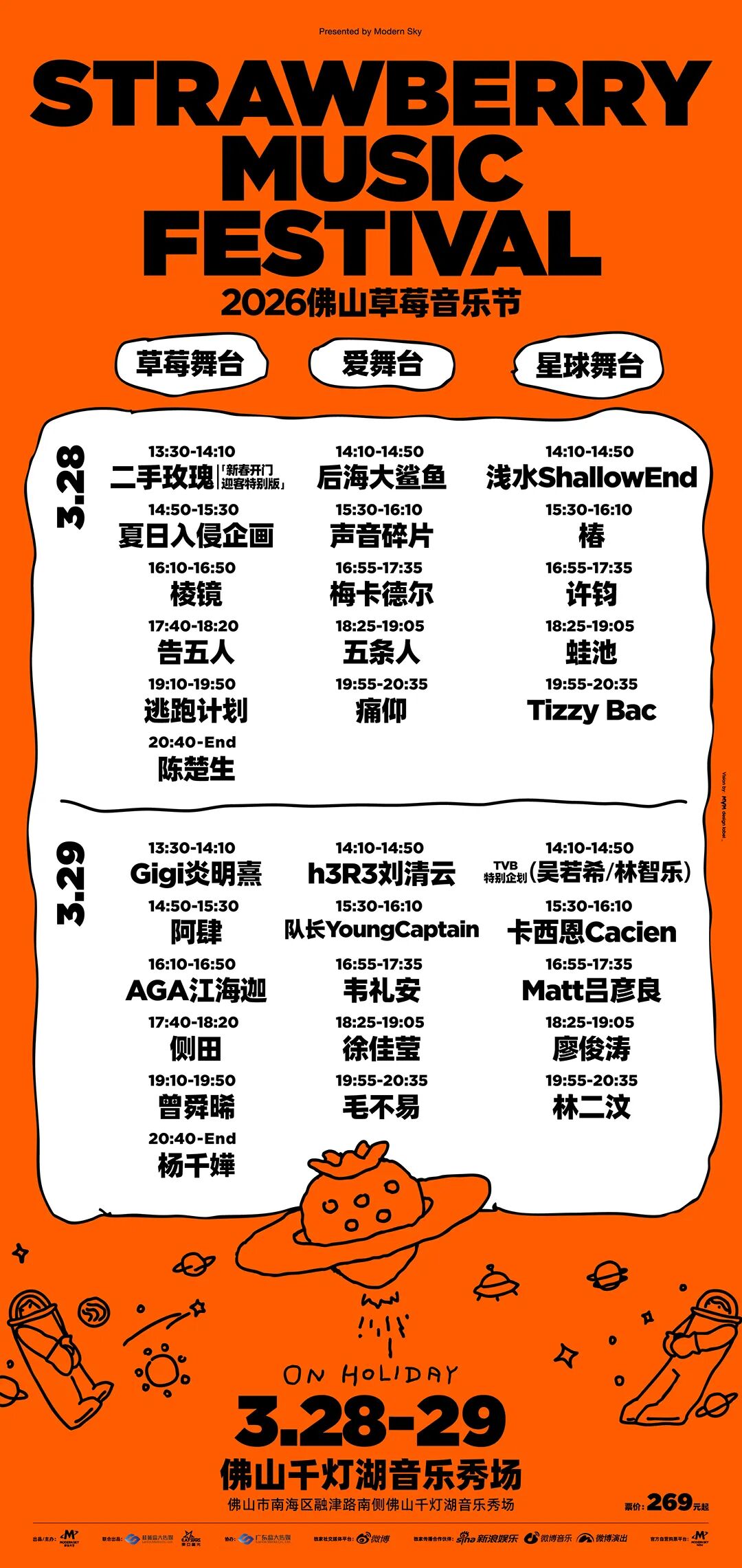 据悉,此前3月3日13时,2026佛山草莓音乐节开票,公布演出时间表。