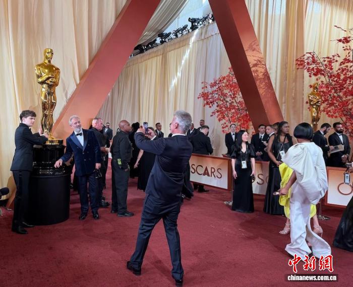 当地时间3月15日,第98届奥斯卡奖颁奖典礼在美国好莱坞杜比剧院举行。图为嘉宾走红毯并与奥斯卡金像合影。 中新社 记者 张朔 摄
