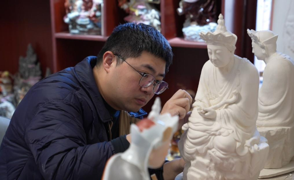江西景德镇的网红“无语佛”是陶瓷雕塑大师曾龙升的作品。曾龙升是“瓷雕曾”的创始人,其家族技艺传承已逾百年。