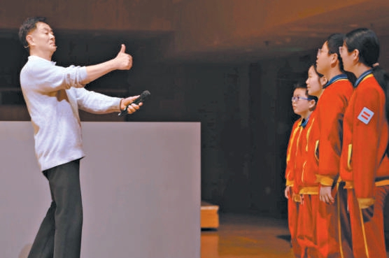 濮存昕指导孩子们朗诵。